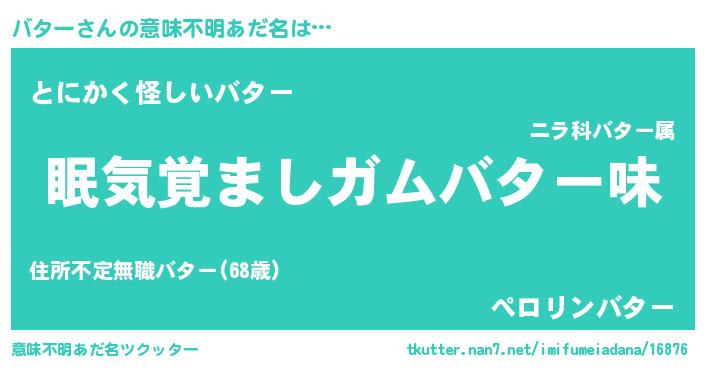 | ヒーロー風カッコイイあだ名 | 『天空の使者バター』『幻影騎士バタ』 |