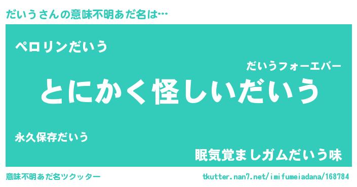 | 女子向けラノベタイトル風あだ名 | 『だいうは平凡を望む』 |