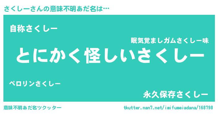 | 欧米人風あだ名 | 『ウサインさくしー』『ダニエルさくしー』 |