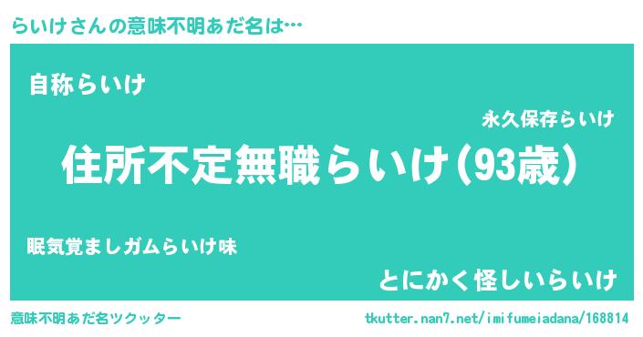 | ヘコむあだ名 | 『らいぷりん』『らいけ(笑)』『豆乳』 |