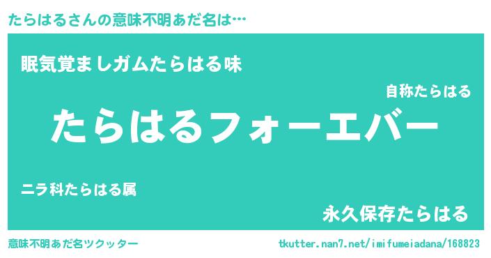 | ヒーロー風カッコイイあだ名 | 『ウルトラたらはるマン』『ネオタラハル』 |