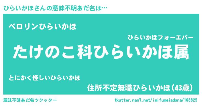 | 男性向けラノベタイトル風あだ名 | 『転生したらひらいかほだった件』 |