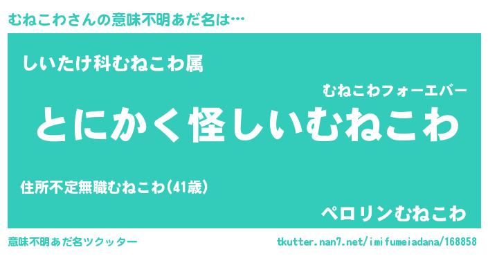 | ヒーロー風カッコイイあだ名 | 『炎刃騎士ムネ』『スーパームネコワ』 |