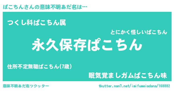 | ヘコむあだ名 | 『ぱこちん(小並感)』『ぱこぷりん』 |