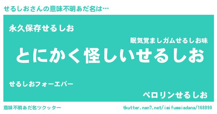| 欧米人風あだ名 | 『せるしお・ステッグマイヤー』 |