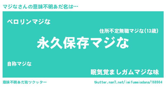 | 男性向けラノベタイトル風あだ名 | 『マジなという概念が存在しない退屈な世界 』 |