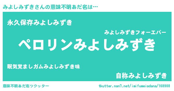 | ヘコむあだ名 | 『みよふぇ~』『みよしみずき(笑)』 |