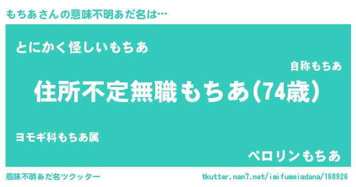 | 男性向けラノベタイトル風あだ名 | 『もちあに滅ぼされるだけの簡単なお仕事です』 |