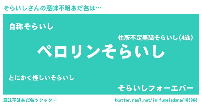 | ヒーロー風カッコイイあだ名 | 『スーパーソライシ』『最強戦士ソライシ』 |