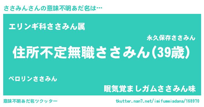 | ヘコむあだ名 | 『ささみん(笑)』『ささもー』 |