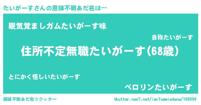 | ヘコむあだ名 | 『たいもー』『たいお』『なまこ酢』 |