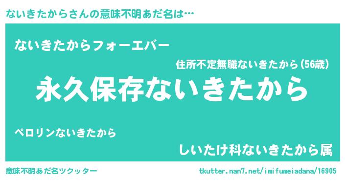 | 男性向けラノベタイトル風あだ名 | 『ないきたからという概念が存在しない退屈な世界 』 |