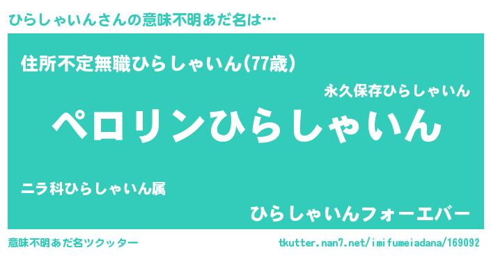 | 男性向けラノベタイトル風あだ名 | 『ひらしゃいんに滅ぼされるだけの簡単なお仕事です』 |