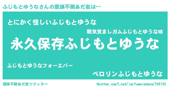 | 男性向けラノベタイトル風あだ名 | 『うちのふじもとゆうなが世界を掌握している!』 |