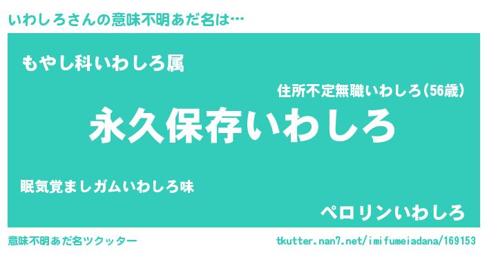 | 男性向けラノベタイトル風あだ名 | 『いわしろという概念が存在しない退屈な世界 』 |