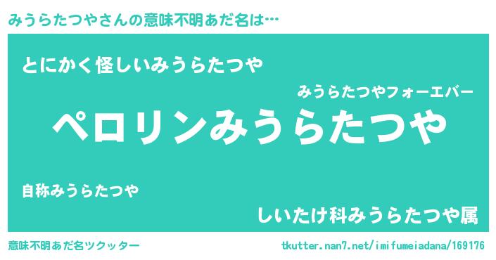 | 男性向けラノベタイトル風あだ名 | 『うちのみうらたつやが世界を掌握している!』 |