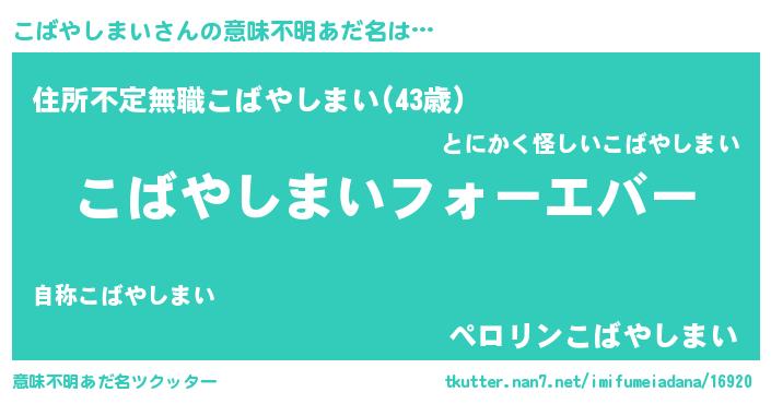 | ファンタジー風あだ名 | 『エターナルコバヤシマイー』 |