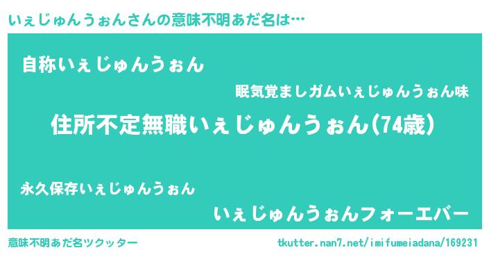| 男性向けラノベタイトル風あだ名 | 『魔弾の王といぇじゅんうぉん』 |