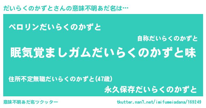 | 胡散臭い通販商品みたいなあだ名 | 『お金では代えられないマグネット磁石…その名も「だいらくのかずと」』 |