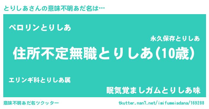 | ヘコむあだ名 | 『とりふぇ~』『とりしあ(笑)』 |