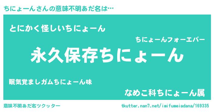 | 男性向けラノベタイトル風あだ名 | 『ちにょーんという概念が存在しない退屈な世界 』 |