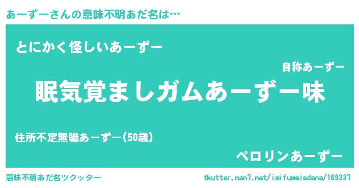 | 女子向けラノベタイトル風あだ名 | 『死神あーずーの再婚』『闇のあーずー』 |