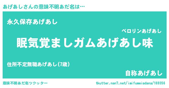 | ヘコむあだ名 | 『あげあし(震え声)』『あげもー』 |