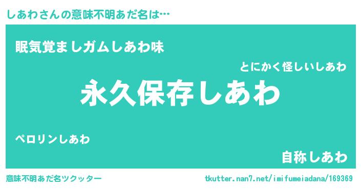 | ヘコむあだ名 | 『しあわ(笑)』『しあっちょ』 |