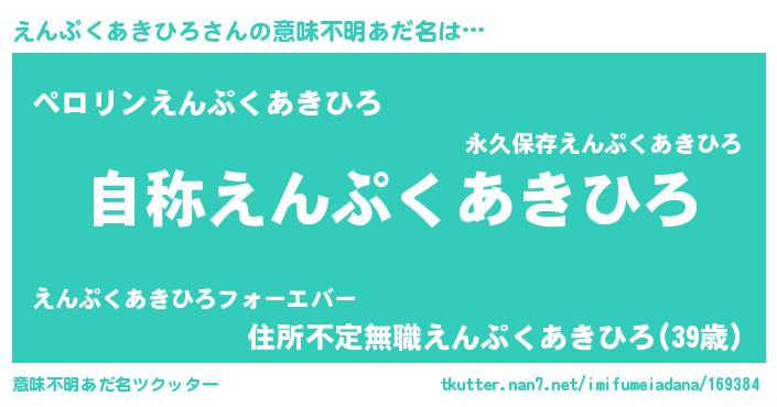 | 男性向けラノベタイトル風あだ名 | 『うちのえんぷくあきひろが世界を掌握している!』 |