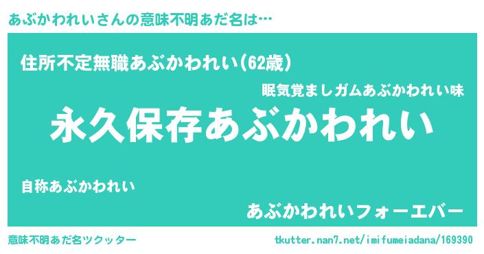 | 胡散臭い通販商品みたいなあだ名 | 『来世でも幸せになれる水素水…その名も「あぶかわれい」』 |
