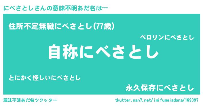 | 男性向けラノベタイトル風あだ名 | 『Re:にべさとしから始める異世界生活』 |