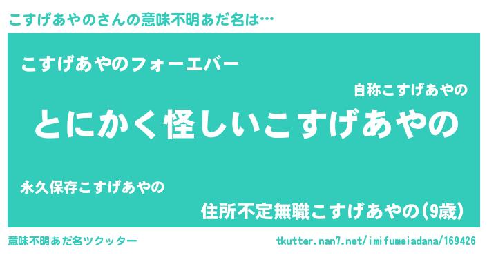 | 胡散臭い通販商品みたいなあだ名 | 『信頼と実績のサプリメント…その名も「こすげあやの」』 |