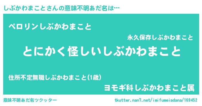 | 欧米人風あだ名 | 『しぶかわまこと・ステッグマイヤー』 |