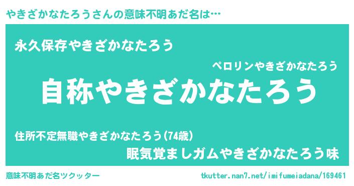 | ヘコむあだ名 | 『やきざかなたろう(苦笑)』『やきにー』 |