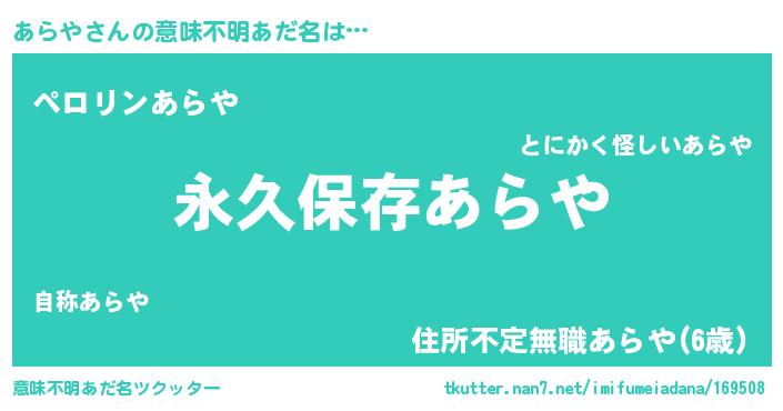 | 欧米人風あだ名 | 『ダルビッシュあらや』『マイケルあらや』 |