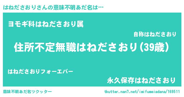 | 男性向けラノベタイトル風あだ名 | 『この素晴らしい世界にはねださおりを!』 |