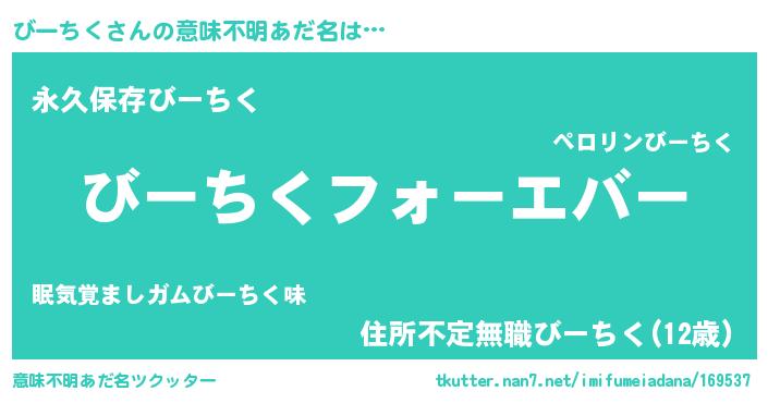 | ヒーロー風カッコイイあだ名 | 『ウルトラびーちくマン』『ネオビーチク』 |