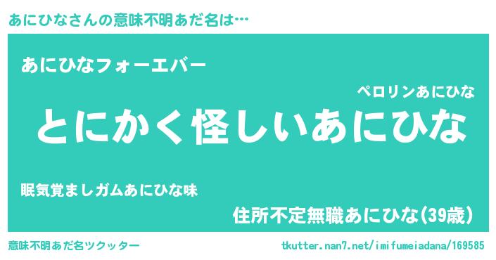 | ポケモン風あだ名 | 『ヒアニヒナ』『アニヒダネ』 |