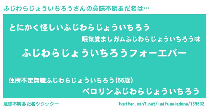 | ヒーロー風カッコイイあだ名 | 『ウルトラふじわらじょういちろうマン』 |