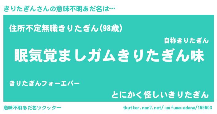| ヒーロー風カッコイイあだ名 | 『慈愛の使者きりたぎん』『仮面キリダー』 |