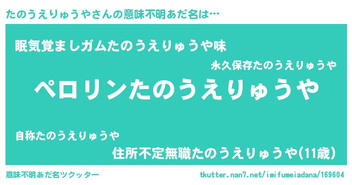 | 男性向けラノベタイトル風あだ名 | 『たのうえりゅうやの憂鬱』 |