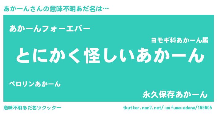 | 女子向けラノベタイトル風あだ名 | 『あかーん様がみてる』 |