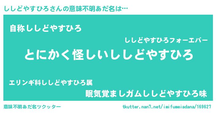 | 男性向けラノベタイトル風あだ名 | 『ダンジョンにししどやすひろを求めるのは間違っているだろうか』 |
