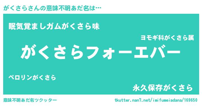 | 欧米人風あだ名 | 『がくさらクリステル』 |