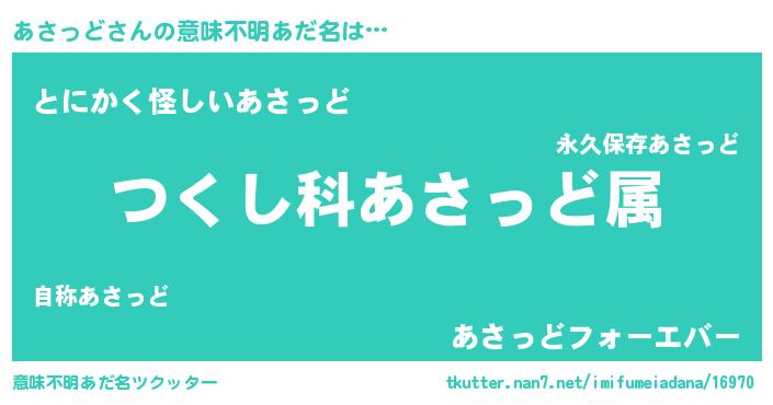 | ヒーロー風カッコイイあだ名 | 『幻影騎士アサ』『ウルトラあさっどマン』 |