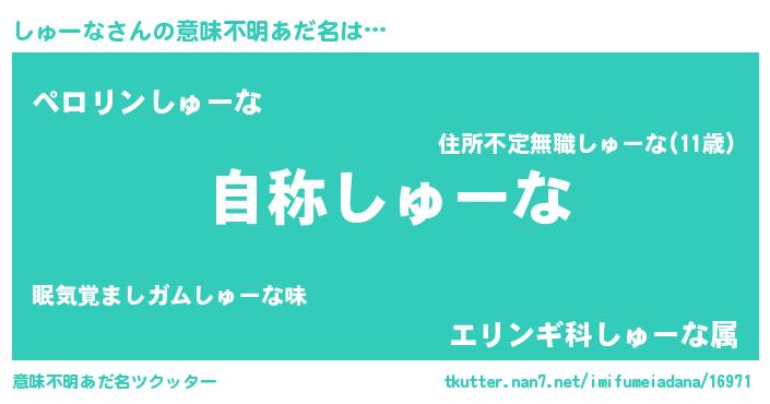 | ヘコむあだ名 | 『しゅもー』『しゅーな(震え声)』 |