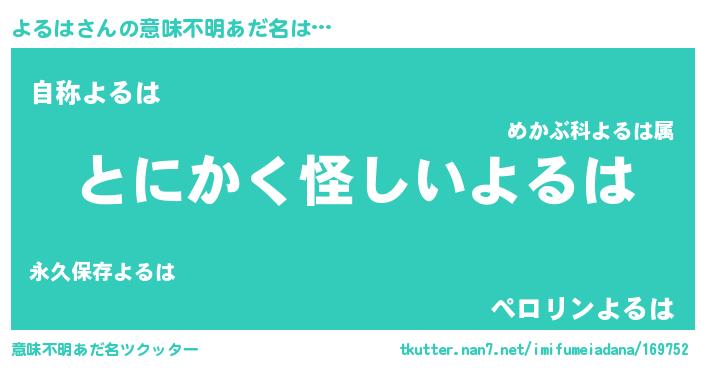 | 欧米人風あだ名 | 『アンジェラ・よるは』『ウサインよるは』 |