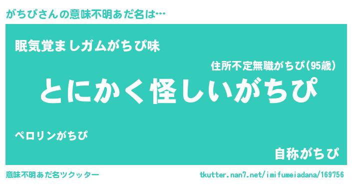 | ヒーロー風カッコイイあだ名 | 『黄金騎士ガチ』『友情の使者がちぴ』 |