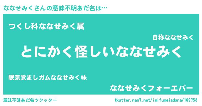 | ポケモン風あだ名 | 『ヒナナセミク』『メロナッナ』 |