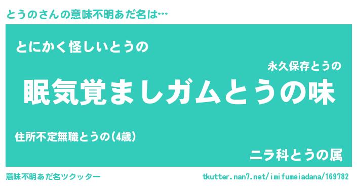 | ヘコむあだ名 | 『とうっちょ』『とうの(小並感)』 |